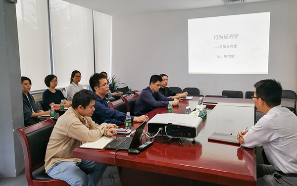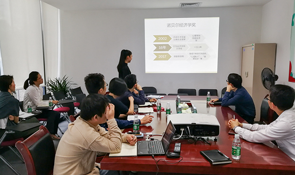 陳怡俊博士首先從亞當(dāng)斯密等經(jīng)濟(jì)學(xué)大師的經(jīng)典觀點(diǎn)出發(fā),為大家介紹了行為經(jīng)濟(jì)學(xué)與傳統(tǒng)經(jīng)濟(jì)學(xué)的傳承關(guān)系,并闡述了行為經(jīng)濟(jì)學(xué)的三個(gè)假設(shè)前提——有限理性、有限自私以及有限意志力。其中,關(guān)于有限理性,1978年諾獎(jiǎng)得主Herbert Simon的“滿意度算法”構(gòu)成了行為經(jīng)濟(jì)學(xué)的邏輯開端。關(guān)于有限自私的討論,陳怡俊總結(jié)認(rèn)為,自私固然是人的本性之一,但人們也通常會(huì)關(guān)注公平問題,具有利他特征,這是與傳統(tǒng)經(jīng)濟(jì)學(xué)的不同之處。隨后,陳怡俊博士展示了行為經(jīng)濟(jì)學(xué)的實(shí)證研究方法,尤其是居于主導(dǎo)地位的腦科學(xué)方法。她從人腦的三層結(jié)構(gòu)出發(fā),闡述人類社會(huì)行為的感性與理性決策,并用社會(huì)仿真的方法揭示了“馬太效應(yīng)”等社會(huì)網(wǎng)絡(luò)的演變特點(diǎn)。參與分享會(huì)的同事專心聆聽,積極發(fā)問,尤其對(duì)于共享經(jīng)濟(jì)、金融市場投資的非理性特征,進(jìn)行了深入的探討。