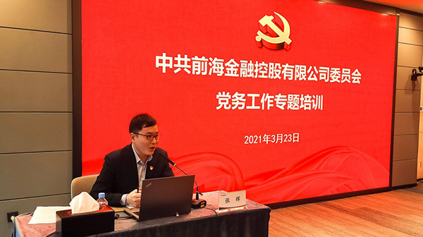 為進一步提升基層黨組織黨務(wù)干部的業(yè)務(wù)水平和履職能力,夯實黨建工作基礎(chǔ),3月23日下午,前海金控黨委組織開展黨務(wù)工作專題培訓(xùn),邀請前海管理局組織人事部張輝主任做專題培訓(xùn),前海金控各支部書記、委員及黨務(wù)工作者參加培訓(xùn)。