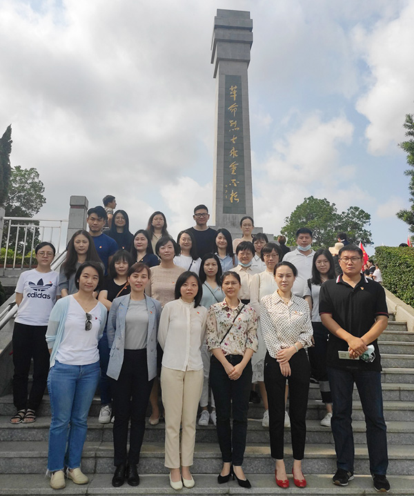 全體黨員首先來(lái)到洪田七烈士墓緬懷先烈。在市知識(shí)產(chǎn)權(quán)保護(hù)中心黨支部副書記鄧愛科同志和金控黨委副書記王凡同志的帶領(lǐng)下,大家沿著層層階梯拾級(jí)而上,懷著沉重的心情向在抗日及革命戰(zhàn)爭(zhēng)中犧牲的英烈致敬,深刻體會(huì)革命先烈舍生取義的革命精神,感謝他們?cè)⊙獖^戰(zhàn)帶給我們今天的安定生活。