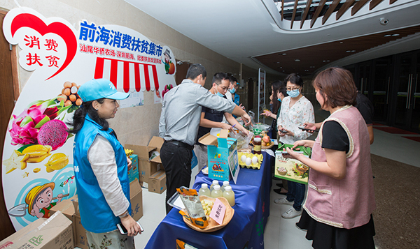 2020年是全面建成小康社會(huì)收官之年,打贏脫貧攻堅(jiān)戰(zhàn)是全面建成小康社會(huì)的重中之重。前海金控積極響應(yīng)國家號(hào)召,主動(dòng)聯(lián)系前海扶貧工作隊(duì)和汕尾扶貧企業(yè),協(xié)調(diào)基金小鎮(zhèn)場(chǎng)地支持,與前海機(jī)關(guān)食堂、前海創(chuàng)新中心食堂、前海黨群服務(wù)中心同步開展消費(fèi)扶貧活動(dòng),以農(nóng)產(chǎn)品集市擺攤的方式,將扶貧地區(qū)農(nóng)產(chǎn)品帶入市場(chǎng)。同時(shí),還組織了前海金融志愿者服務(wù)隊(duì)全程協(xié)助,通過細(xì)致工作和熱情服務(wù),為展銷活動(dòng)圓滿完成提供了充分保障。下一步,前海金控將立足前海實(shí)際,加大力度推進(jìn)消費(fèi)扶貧工作,為決戰(zhàn)脫貧攻堅(jiān)、決勝全面小康貢獻(xiàn)力量。