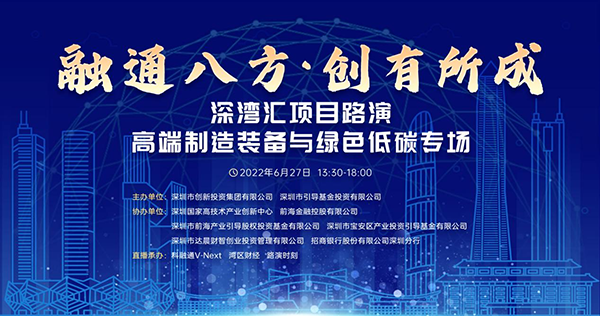 6月27日,由深圳市創(chuàng)新投資集團有限公司、深圳市引導基金投資有限公司主辦,前海金融控股有限公司、深圳市前海產(chǎn)業(yè)引導股權(quán)投資基金有限公司等協(xié)辦的“融通八方·創(chuàng)有所成”深灣匯高端制造裝備與綠色低碳專場項目路演活動,以線上線下融合方式圓滿舉辦。