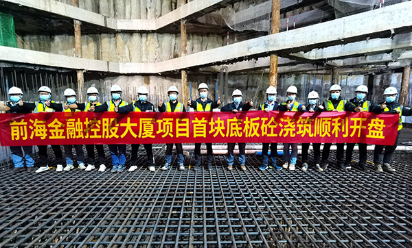 近日,伴隨著最后1方混凝土從泵管中噴出,前海金融控股大廈項(xiàng)目順利完成首塊底板澆筑。