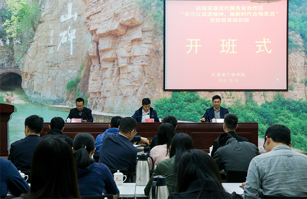 在深圳改革開放40周年、前海合作區(qū)設(shè)立8周年之際,為探索“以共建促黨建,以共建促服務(wù),以共建促發(fā)展”的黨建新路徑,讓黨員干部實地感受“自力更生、艱苦創(chuàng)業(yè)、團結(jié)協(xié)作、無私奉獻”的紅旗渠精神,增強黨員干部黨性修養(yǎng),10月15日,前海金控會同前海金融同業(yè)公會組織深圳金融監(jiān)管機構(gòu)、前海管理局以及同業(yè)公會會員單位黨員代表在紅旗渠干部學(xué)院開展“學(xué)習(xí)紅旗渠精神 做新時代合格黨員”專題黨性教育培訓(xùn)。