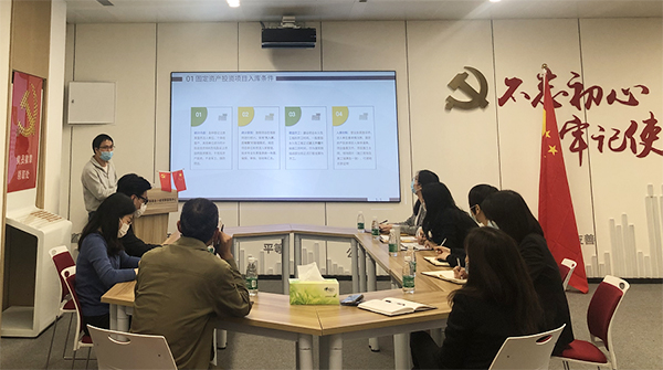 為協(xié)助企業(yè)做好復(fù)工復(fù)產(chǎn),近日,前海金控第七黨支部利用午休時間,在基金小鎮(zhèn)黨群服務(wù)中心開展了固定資產(chǎn)投資統(tǒng)計業(yè)務(wù)講座。綜合管理部、資金財務(wù)部、前海金控總部大廈項目工作小組相關(guān)工作人員參加了培訓(xùn)。